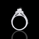 Glittering round cut diamonds than surrounds the center piece and continues down the open V shank for a wonderful look. The fancy undercarriage enhances the design with a secret diamond positioned below the center diamond. These side diamonds have a total combined weight of .50 carat and match the center stone perfectly!