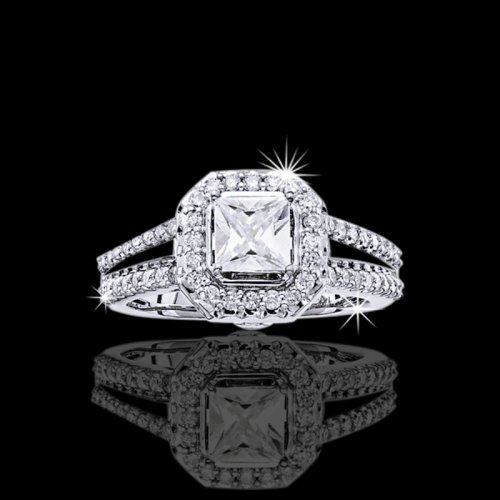 This alluring diamond engagement ring expresses an elegant demeanor that is undeniable. Its beauty is defined by a gorgeous .75 carat princess cut diamond. This fiery diamond has a clarity of SI2 with a colorless grade of F.