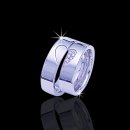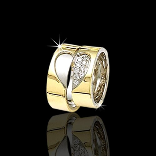 Uncompromising beauty mixed with contemporary styling has yielded this extraordinary piece. This 7mm wide Diamond wedding ring has two pieces with half-heart motif, which creates a whole heart when put together. Ladies' ring has diamonds and mens ring is plain. Her ring has round shaped diamonds with a channel setting. The ring is set with 8 Round Brilliant Cut Diamonds. Each diamond weighs 0.02ct, which is a total of 0.16ct. The diamonds are graded G in color and SI1 in clarity. The bands are high polished and comfort fit.